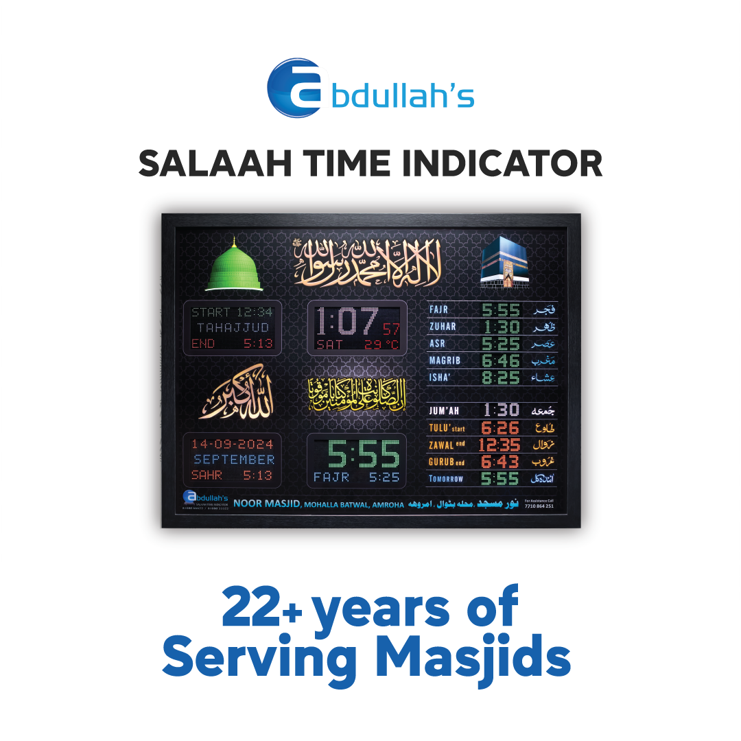 Donate a Salaah Time Indicator to your nearest masjid and earn continuous rewards.