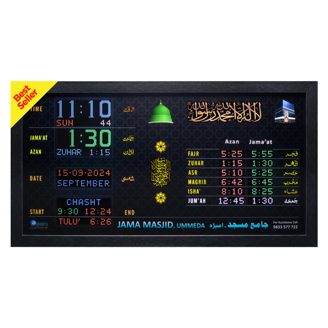 Enhance your Masjid or Islamic center with our state-of-the-art Salaah Time Indicator, designed to display accurate prayer times with ease and clarity. At Abdullah’s Electronics Center, we have been serving Masjids worldwide for over 22 years, providing Salah Time Indicators designed to ensure precision, organization, and punctuality in daily prayers.
